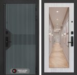 Отделка снаружи: Фрезерованная МДФ панель 10 мм, цвет «Velutto Verde» с патиной и вставкой из металла в цвет наличника