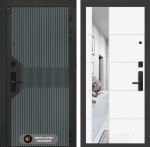 Отделка снаружи: Фрезерованная МДФ панель 10 мм, цвет «Velutto Verde» с патиной и вставкой из металла в цвет наличника