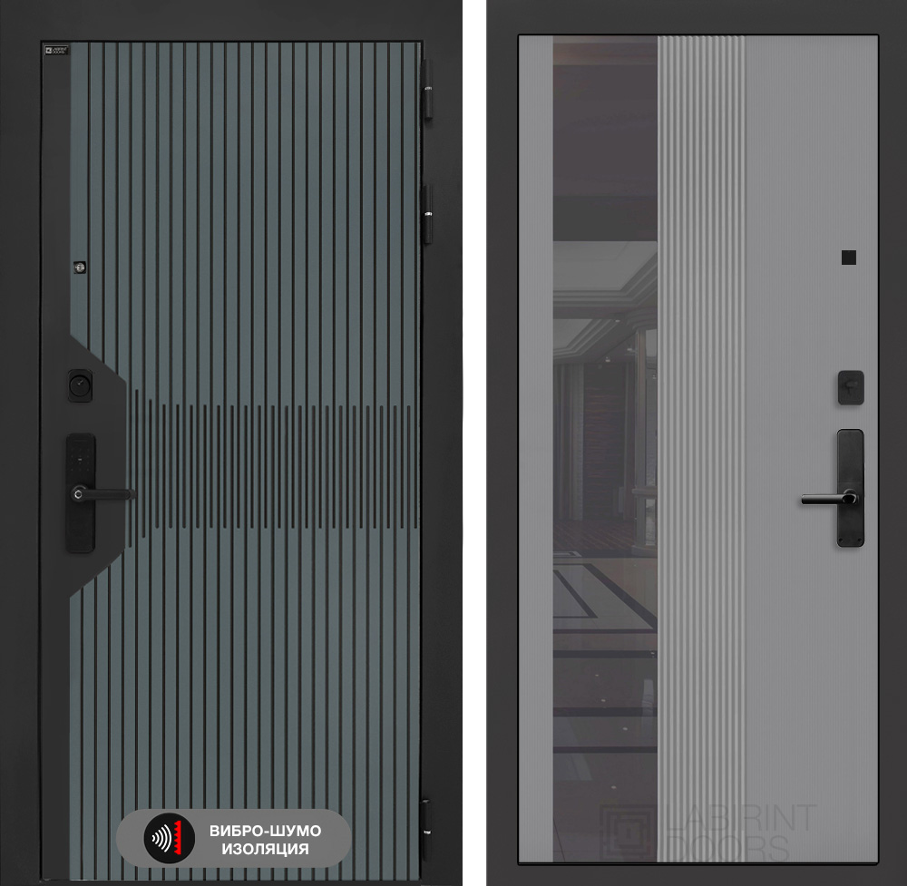 Внутренняя отделка: Фрезерованная МДФ панель 10 мм с тонированным зеркалом (ширина 244 мм), цвет «Серый рельеф софт»