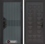 Отделка снаружи: Фрезерованная МДФ панель 10 мм, цвет «Velutto Verde» с патиной и вставкой из металла в цвет наличника