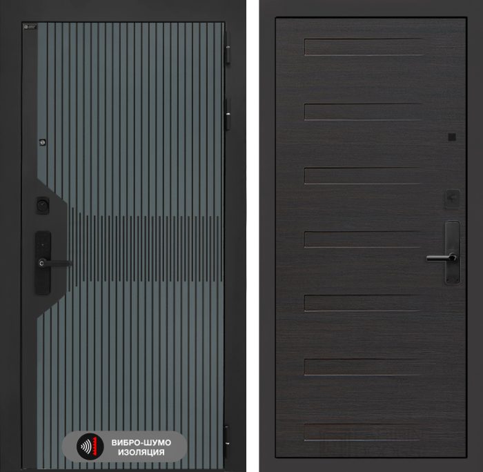 Отделка снаружи=’Фрезерованная МДФ панель 10 мм, цвет «Velutto Verde» с патиной и вставкой из металла в цвет наличника’