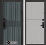 Отделка снаружи: Фрезерованная МДФ панель 10 мм, цвет «Velutto Verde» с патиной и вставкой из металла в цвет наличника