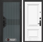 Отделка снаружи: Фрезерованная МДФ панель 10 мм, цвет «Velutto Verde» с патиной и вставкой из металла в цвет наличника
