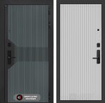 Отделка снаружи: Фрезерованная МДФ панель 10 мм, цвет «Velutto Verde» с патиной и вставкой из металла в цвет наличника