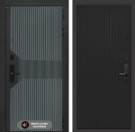 Отделка снаружи: Фрезерованная МДФ панель 10 мм, цвет «Velutto Verde» с патиной и вставкой из металла в цвет наличника