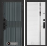 Отделка снаружи: Фрезерованная МДФ панель 10 мм, цвет «Velutto Verde» с патиной и вставкой из металла в цвет наличника