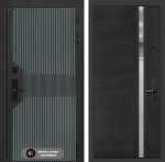 Отделка снаружи: Фрезерованная МДФ панель 10 мм, цвет «Velutto Verde» с патиной и вставкой из металла в цвет наличника