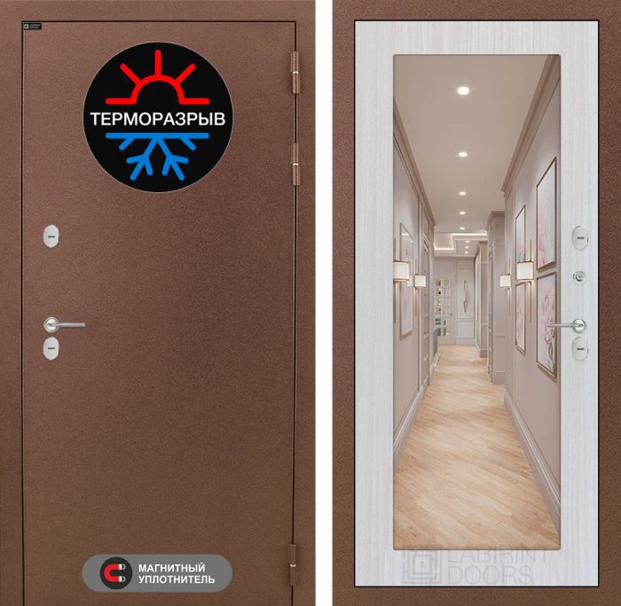Главная Двери с терморазрывом Термо Входная дверь Термо Магнит с Зеркалом 18 — Сандал белый