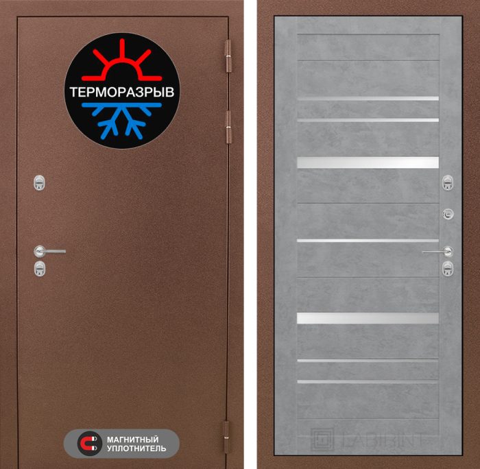 Главная Двери с терморазрывом Термо Входная дверь Термо Магнит 20 — Бетон светлый, зеркальные вставки