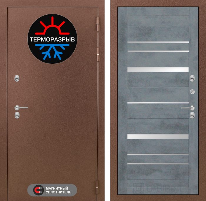 Главная Двери с терморазрывом Термо Входная дверь Термо Магнит 20 — Бетон темный, зеркальные вставки