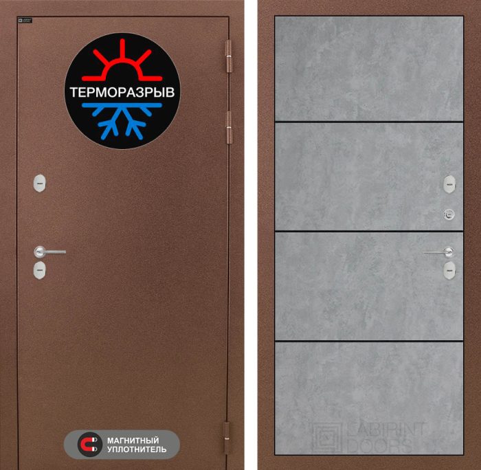 Главная Двери с терморазрывом Термо Входная дверь Термо Магнит 25 — Бетон светлый, черный молдинг