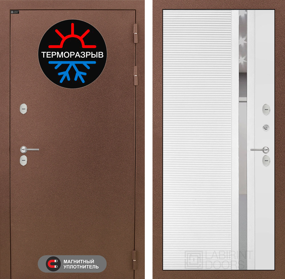 Главная Двери с терморазрывом Термо Входная дверь Термо Магнит 31 — Белый софт, зеркальная вставка с тонировкой