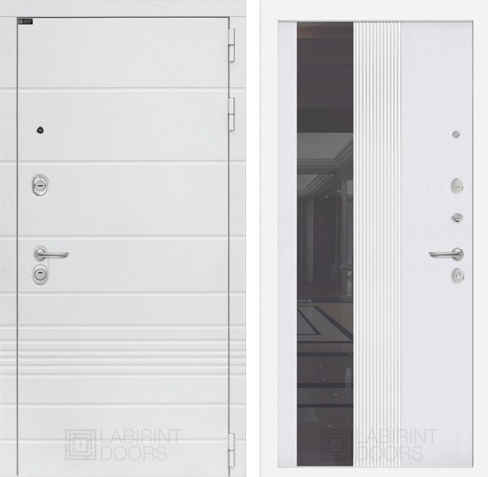 Входная дверь Трендо с Зеркалом 32 тонированным — Белый рельеф софт