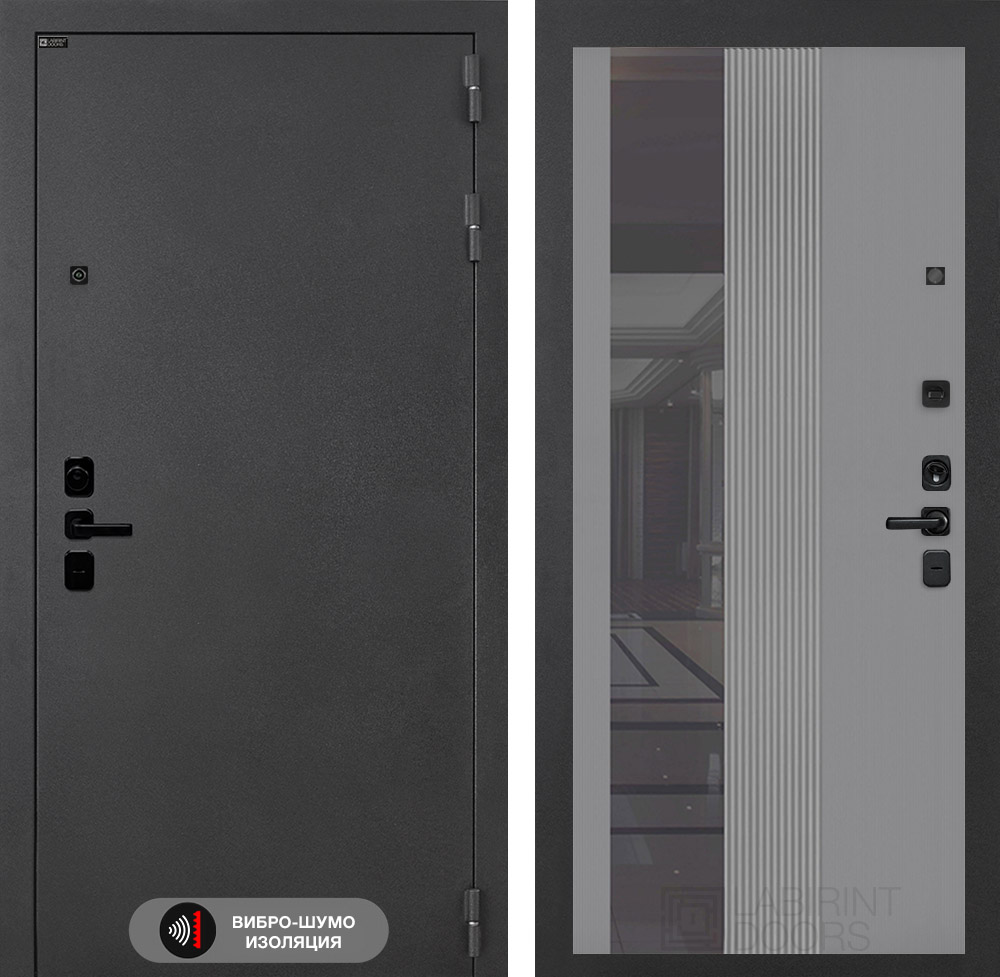 Внутренняя отделка: Фрезерованная МДФ панель 10 мм с тонированным зеркалом (ширина 244 мм), цвет «Серый рельеф софт»