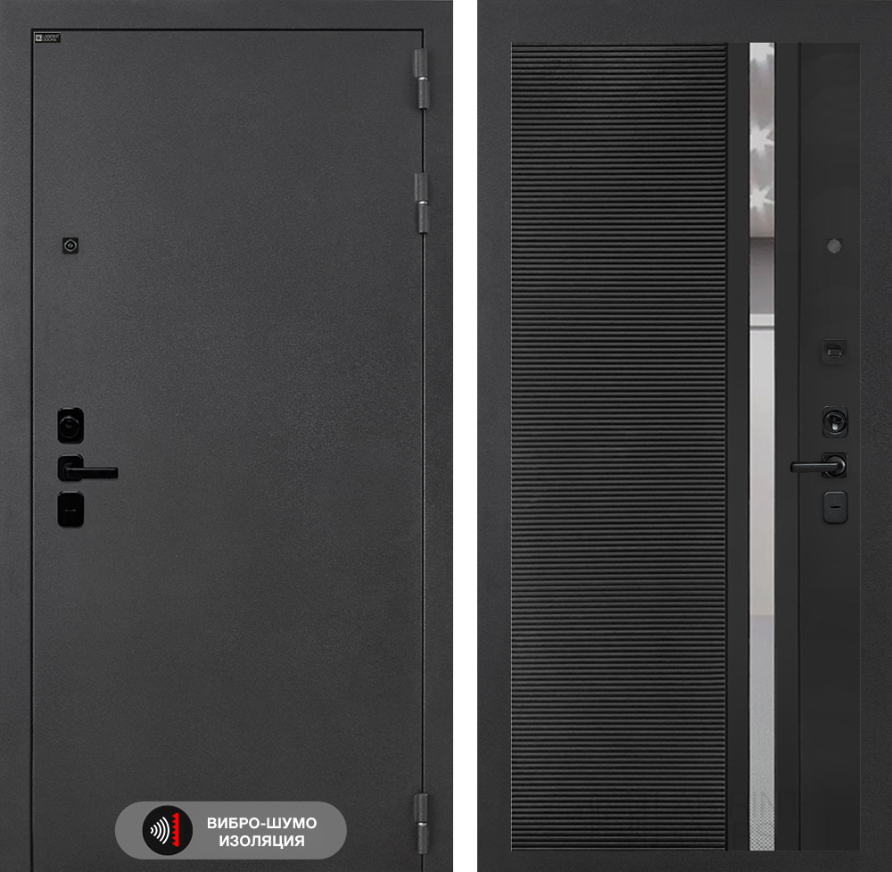 Полный комплект: Фурнитура в черном цвете: Броненакладка врезная, накладка со шторкой, глазок , дверная ручка, ночная задвижка. Цилиндр ключ-вертушка (производитель не регламентируется), регулируемый эксцентрик.’