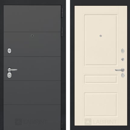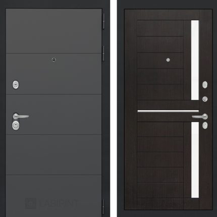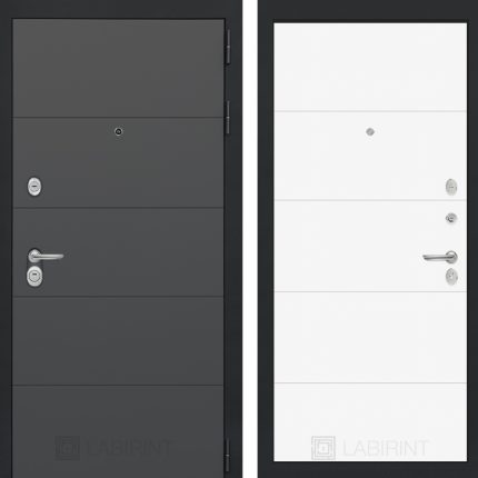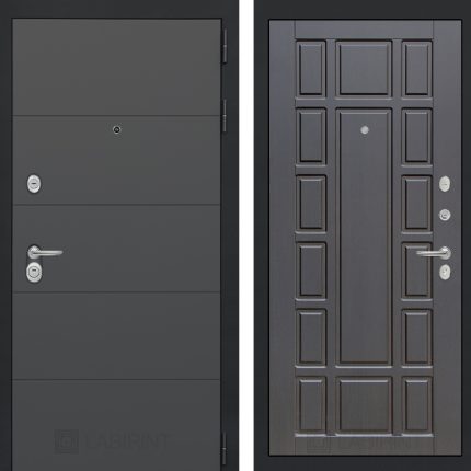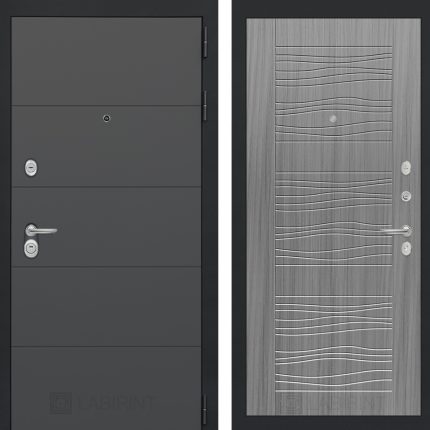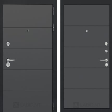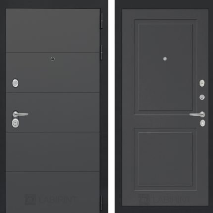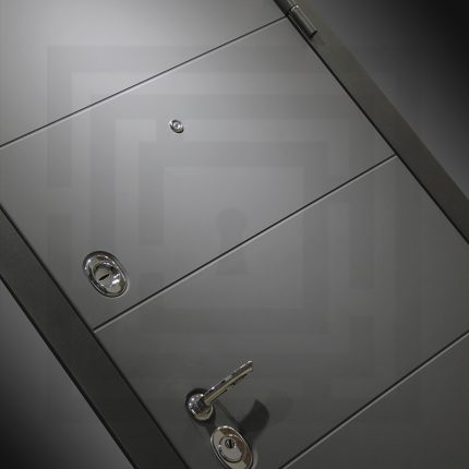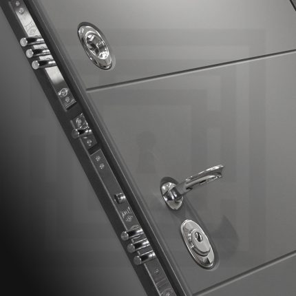 Отделка снаружи: Современная декоративная MDF панель 10 мм, цвет «Графит софт» с металлическим наличником, цвет покраски металла «Муар» серый с блестками