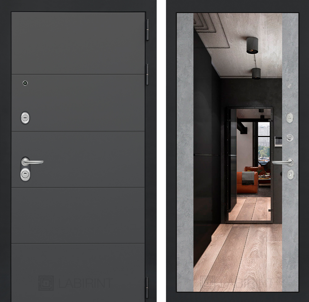 Внутренняя отделка: Декоративная MDF панель 16 мм с широким зеркалом, цвет «Бетон светлый»