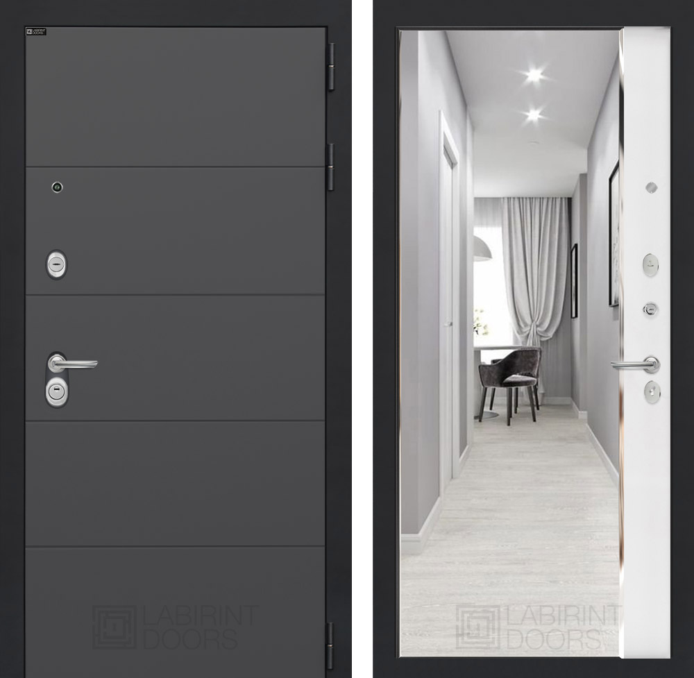 Отделка снаружи: Современная декоративная MDF панель 10 мм, цвет «Графит софт» с металлическим наличником, цвет покраски металла «Муар» серый с блестками