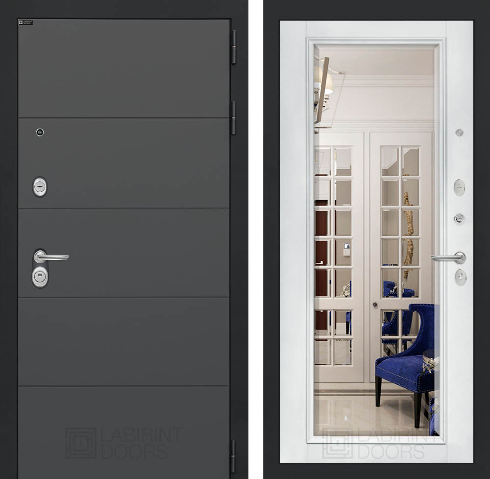 Отделка снаружи: Современная декоративная MDF панель 10 мм, цвет «Графит софт» с металлическим наличником, цвет покраски металла «Муар» серый с блестками
