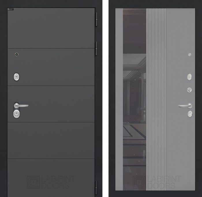 Главная Двери комфорт ART Входная дверь ART с Зеркалом 32 тонированным — Серый рельеф софт
