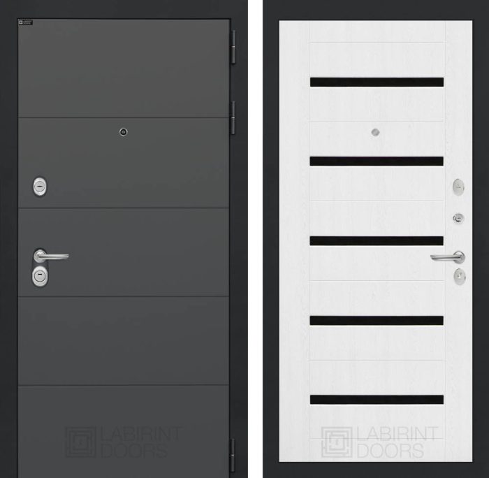 Отделка снаружи=’Современная декоративная MDF панель 10 мм, цвет «Графит софт» с металлическим наличником, цвет покраски металла «Муар» серый с блестками’