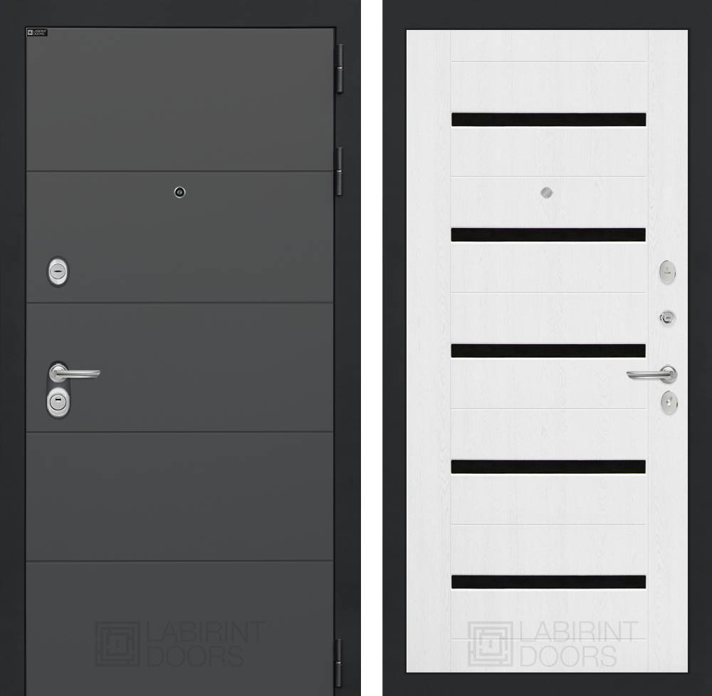 Отделка снаружи: Современная декоративная MDF панель 10 мм, цвет «Графит софт» с металлическим наличником, цвет покраски металла «Муар» серый с блестками
