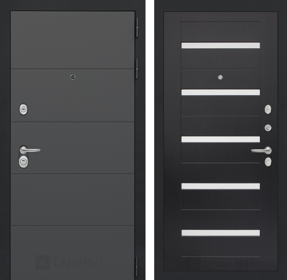 Отделка снаружи: Современная декоративная MDF панель 10 мм, цвет «Графит софт» с металлическим наличником, цвет покраски металла «Муар» серый с блестками