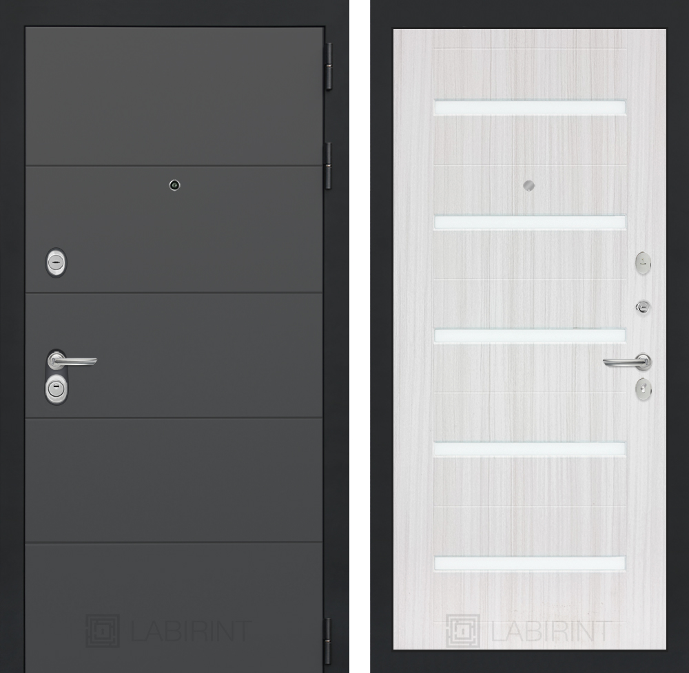 Отделка снаружи: Современная декоративная MDF панель 10 мм, цвет «Графит софт» с металлическим наличником, цвет покраски металла «Муар» серый с блестками