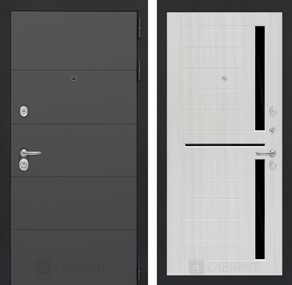 Отделка снаружи: Современная декоративная MDF панель 10 мм, цвет «Графит софт» с металлическим наличником, цвет покраски металла «Муар» серый с блестками