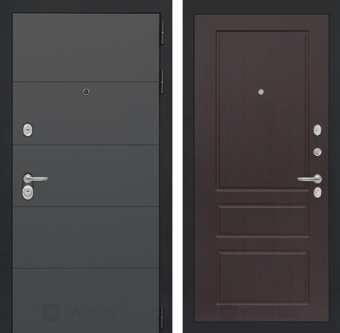 Отделка снаружи=’Современная декоративная MDF панель 10 мм, цвет «Графит софт» с металлическим наличником, цвет покраски металла «Муар» серый с блестками’