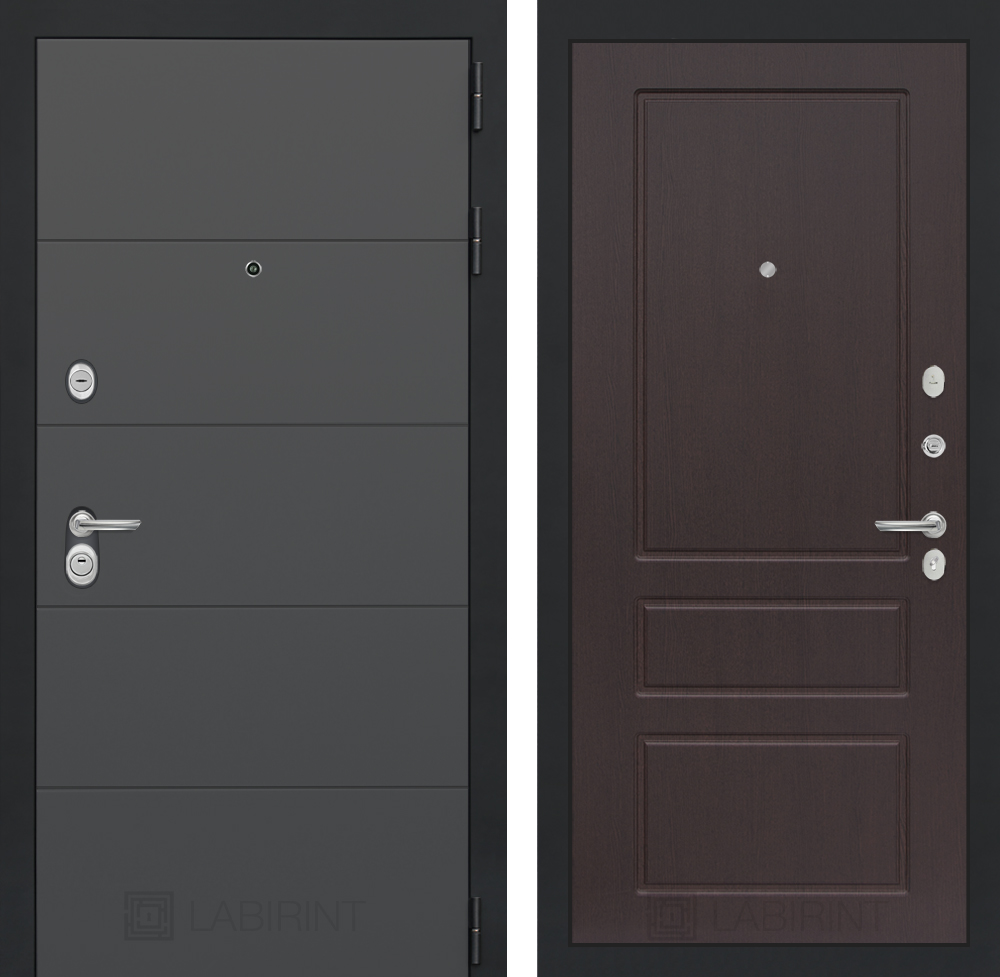 Отделка снаружи: Современная декоративная MDF панель 10 мм, цвет «Графит софт» с металлическим наличником, цвет покраски металла «Муар» серый с блестками