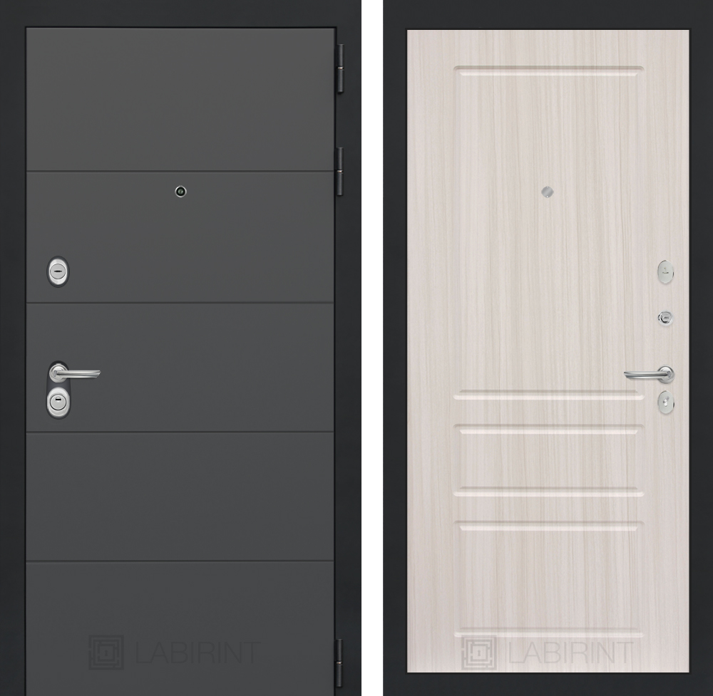 Отделка снаружи: Современная декоративная MDF панель 10 мм, цвет «Графит софт» с металлическим наличником, цвет покраски металла «Муар» серый с блестками