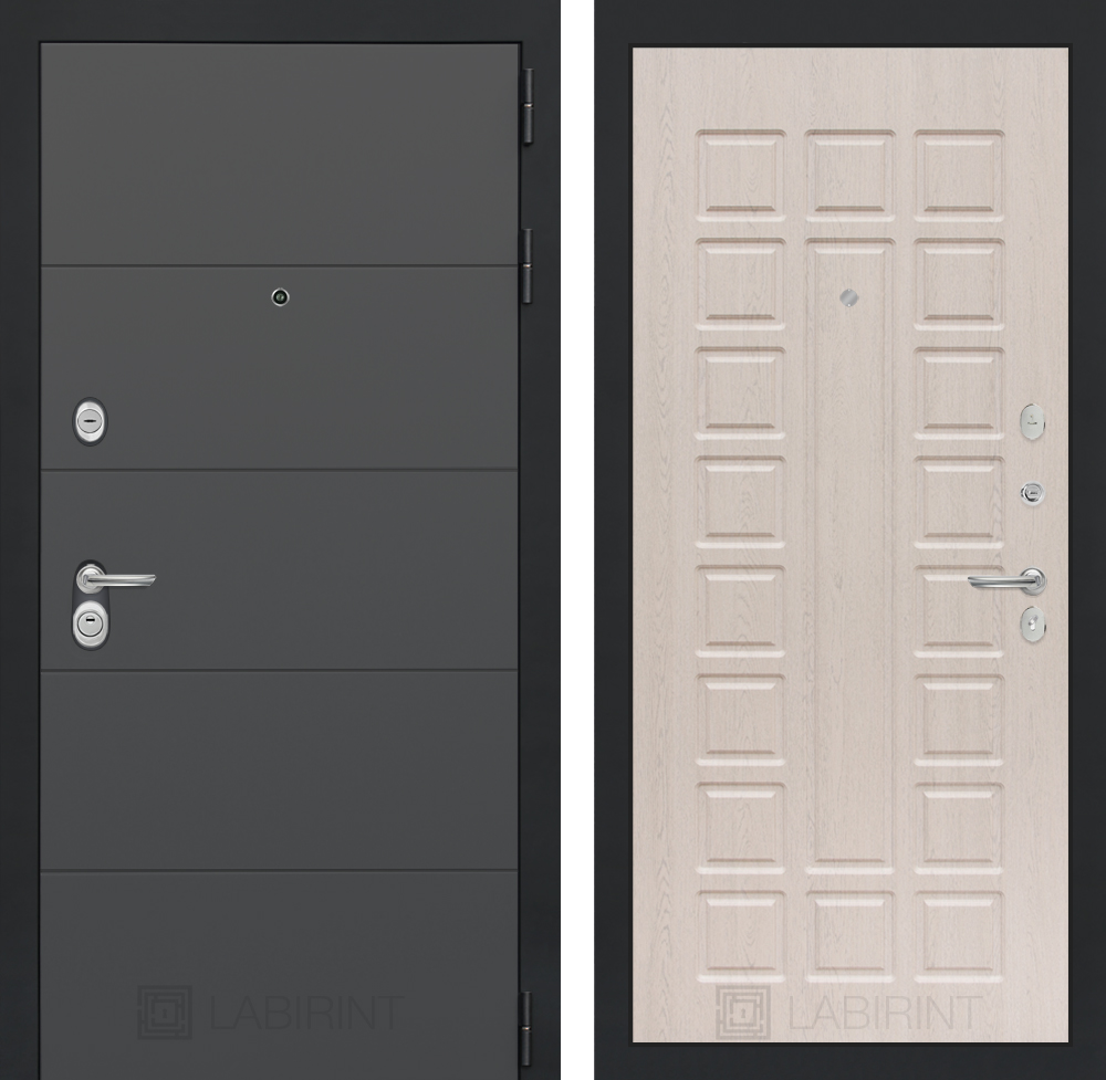 Отделка снаружи=’Современная декоративная MDF панель 10 мм, цвет «Графит софт» с металлическим наличником, цвет покраски металла «Муар» серый с блестками’