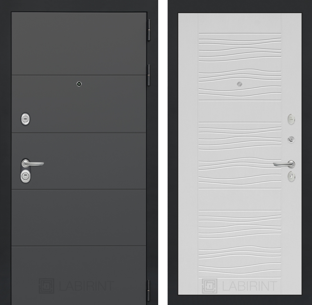 Отделка снаружи: Современная декоративная MDF панель 10 мм, цвет «Графит софт» с металлическим наличником, цвет покраски металла «Муар» серый с блестками