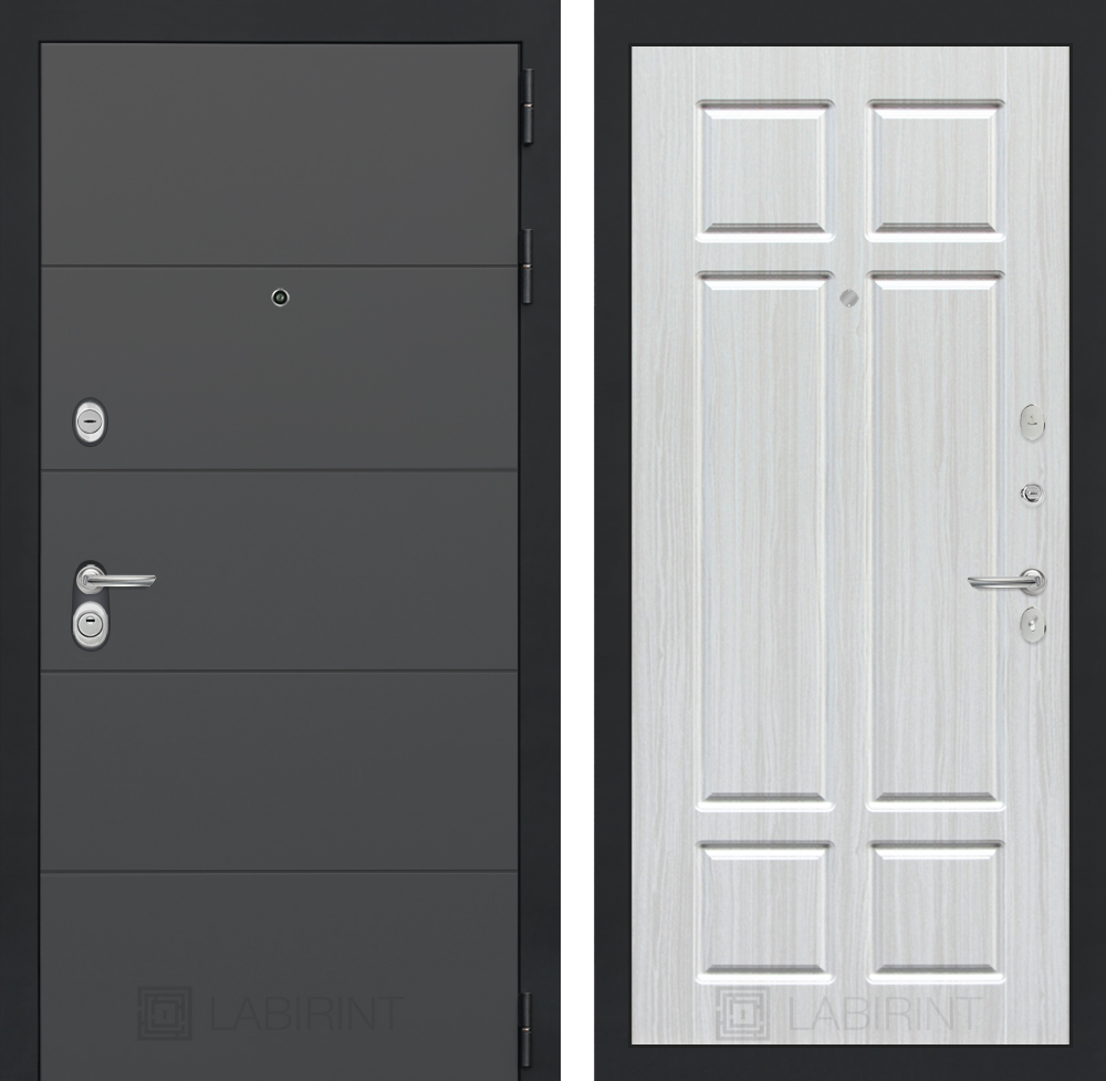 Отделка снаружи: Современная декоративная MDF панель 10 мм, цвет «Графит софт» с металлическим наличником, цвет покраски металла «Муар» серый с блестками