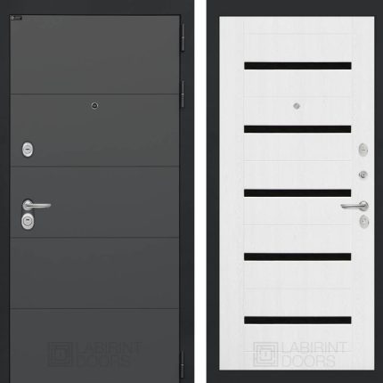 Входная дверь ART 01 — Белое дерево, стекло черное