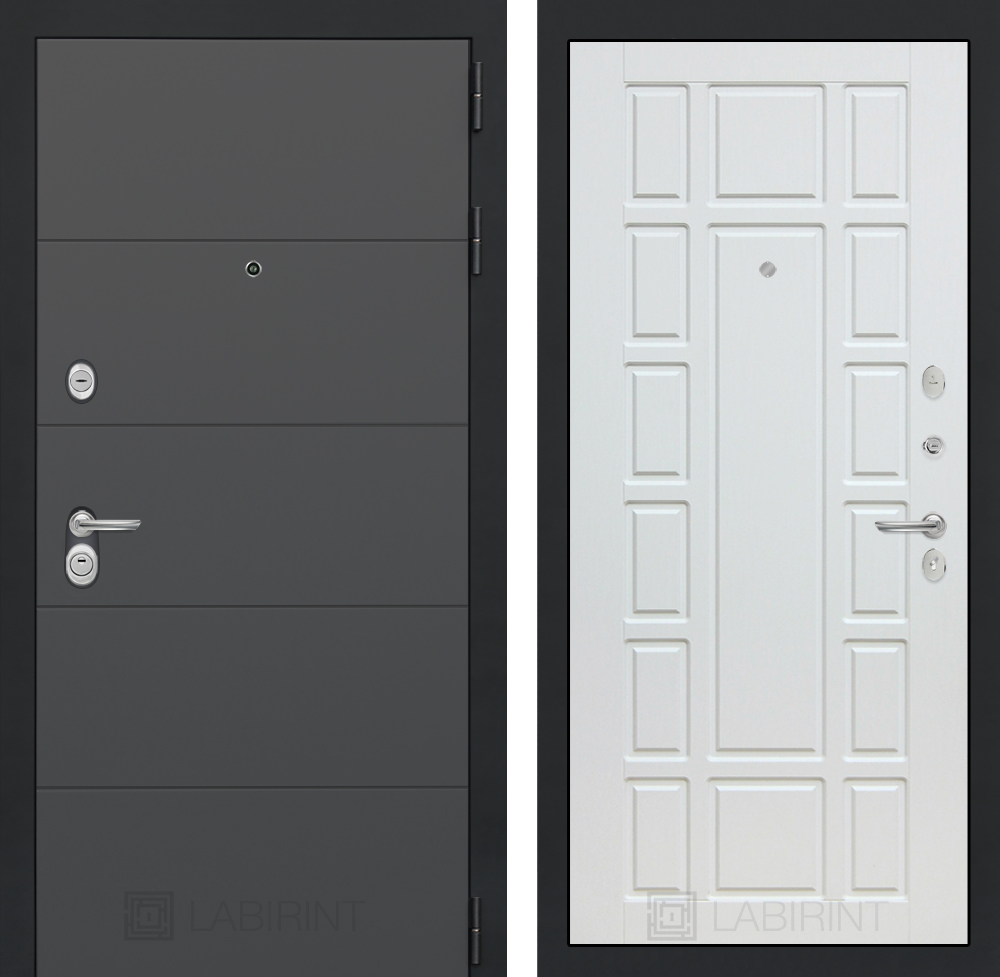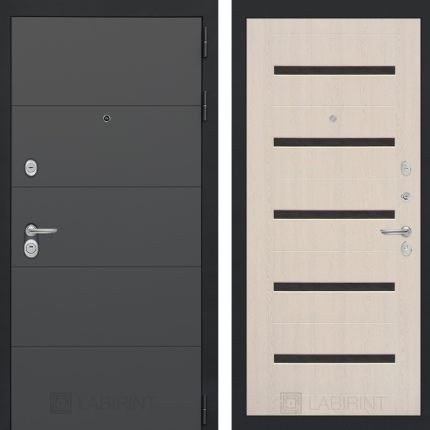 Отделка снаружи: Современная декоративная MDF панель 10 мм, цвет «Графит софт» с металлическим наличником, цвет покраски металла «Муар» серый с блестками