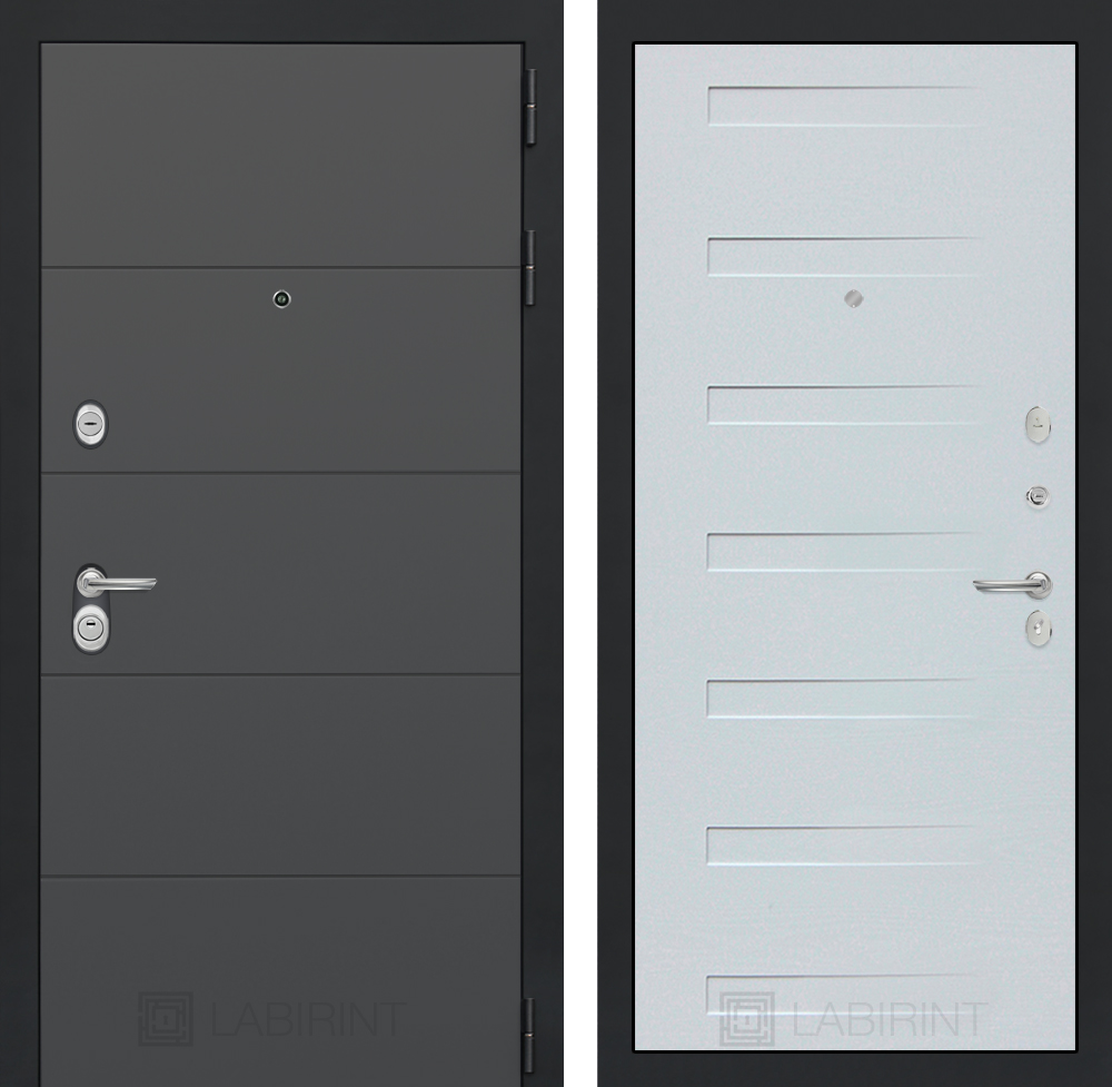 Отделка снаружи: Современная декоративная MDF панель 10 мм, цвет «Графит софт» с металлическим наличником, цвет покраски металла «Муар» серый с блестками