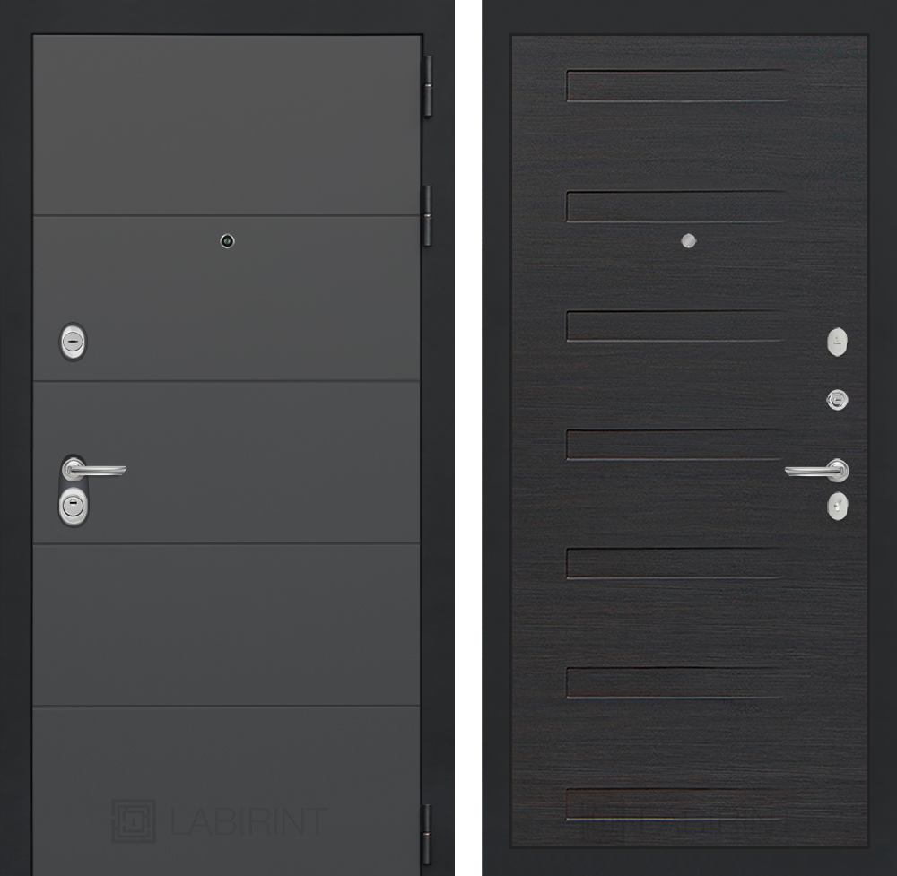 Отделка снаружи: Современная декоративная MDF панель 10 мм, цвет «Графит софт» с металлическим наличником, цвет покраски металла «Муар» серый с блестками