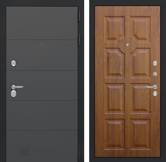 Отделка снаружи=’Современная декоративная MDF панель 10 мм, цвет «Графит софт» с металлическим наличником, цвет покраски металла «Муар» серый с блестками’