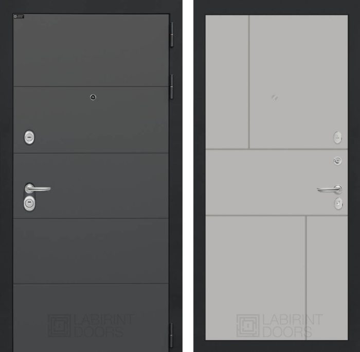 Отделка снаружи=’Современная декоративная MDF панель 10 мм, цвет «Графит софт» с металлическим наличником, цвет покраски металла «Муар» серый с блестками’