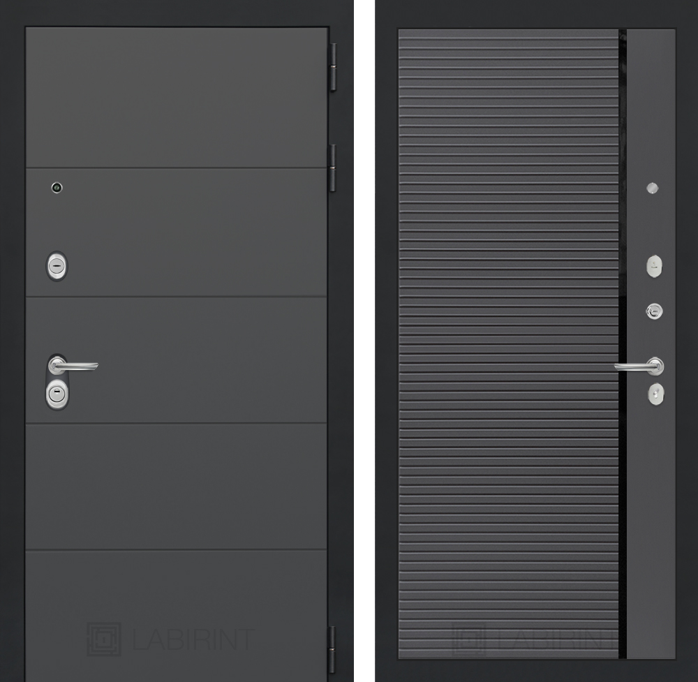 Отделка снаружи=’Современная декоративная MDF панель 10 мм, цвет «Графит софт» с металлическим наличником, цвет покраски металла «Муар» серый с блестками’