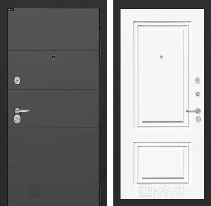 Отделка снаружи=’Современная декоративная MDF панель 10 мм, цвет «Графит софт» с металлическим наличником, цвет покраски металла «Муар» серый с блестками’