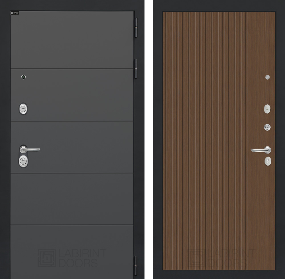 Отделка снаружи: Современная декоративная MDF панель 10 мм, цвет «Графит софт» с металлическим наличником, цвет покраски металла «Муар» серый с блестками