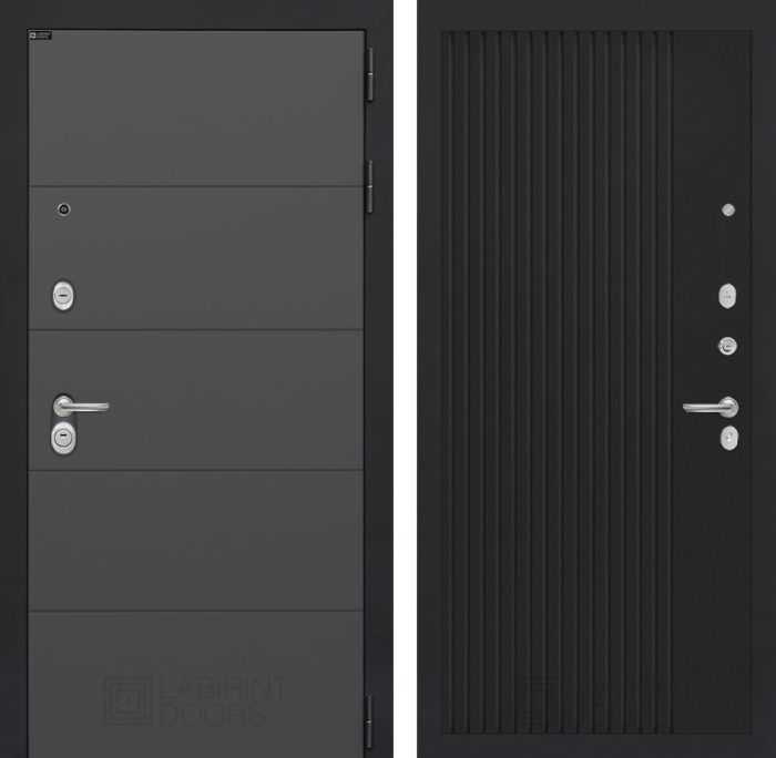 Отделка снаружи=’Современная декоративная MDF панель 10 мм, цвет «Графит софт» с металлическим наличником, цвет покраски металла «Муар» серый с блестками’