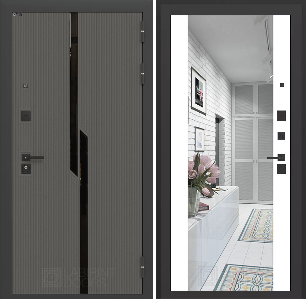 Отделка снаружи: Декоративная MDF панель 10 мм с черным стеклом фацет, цвет «Лофт графит» с металлическим наличником