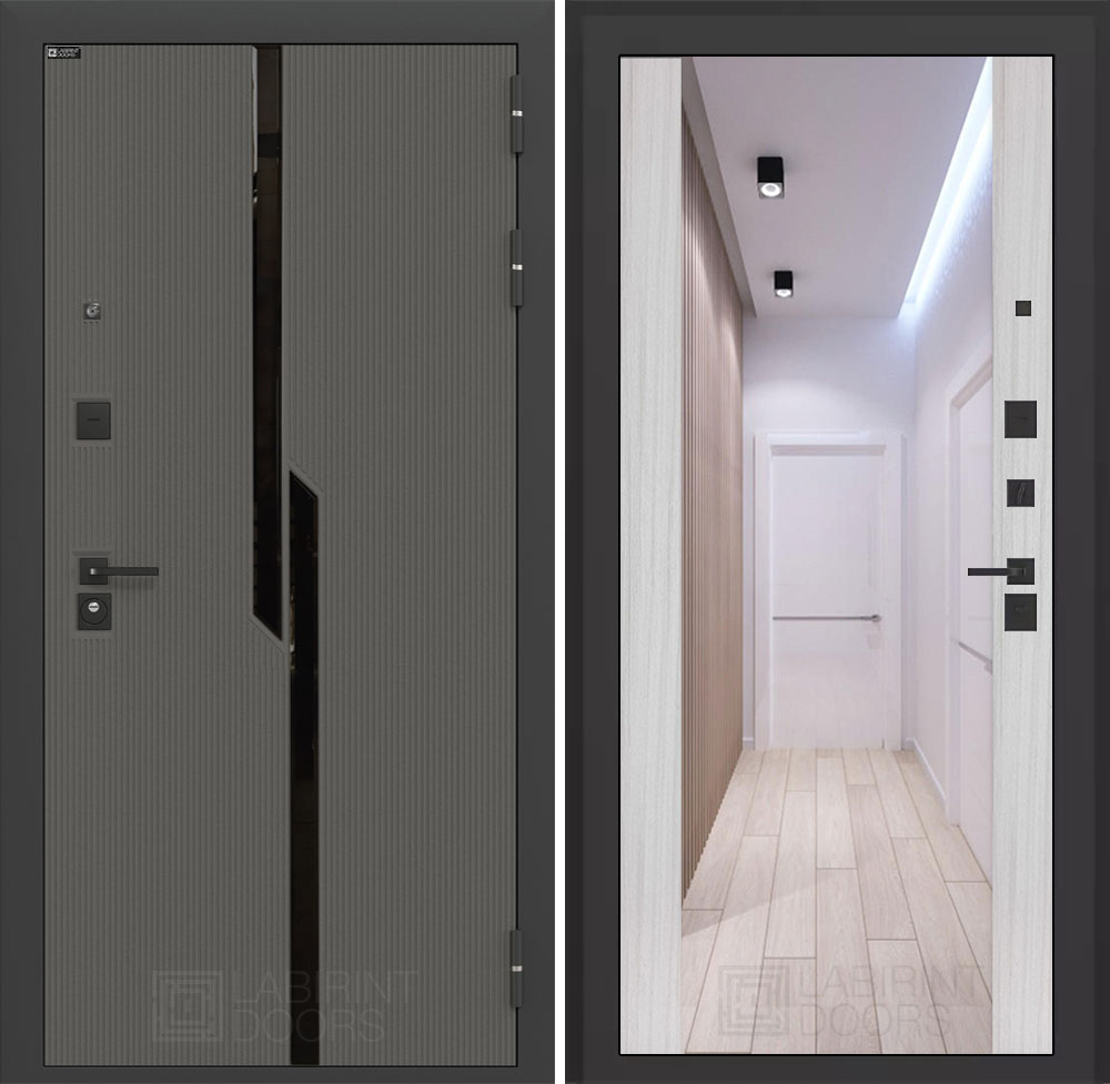 Отделка снаружи: Декоративная MDF панель 10 мм с черным стеклом фацет, цвет «Лофт графит» с металлическим наличником