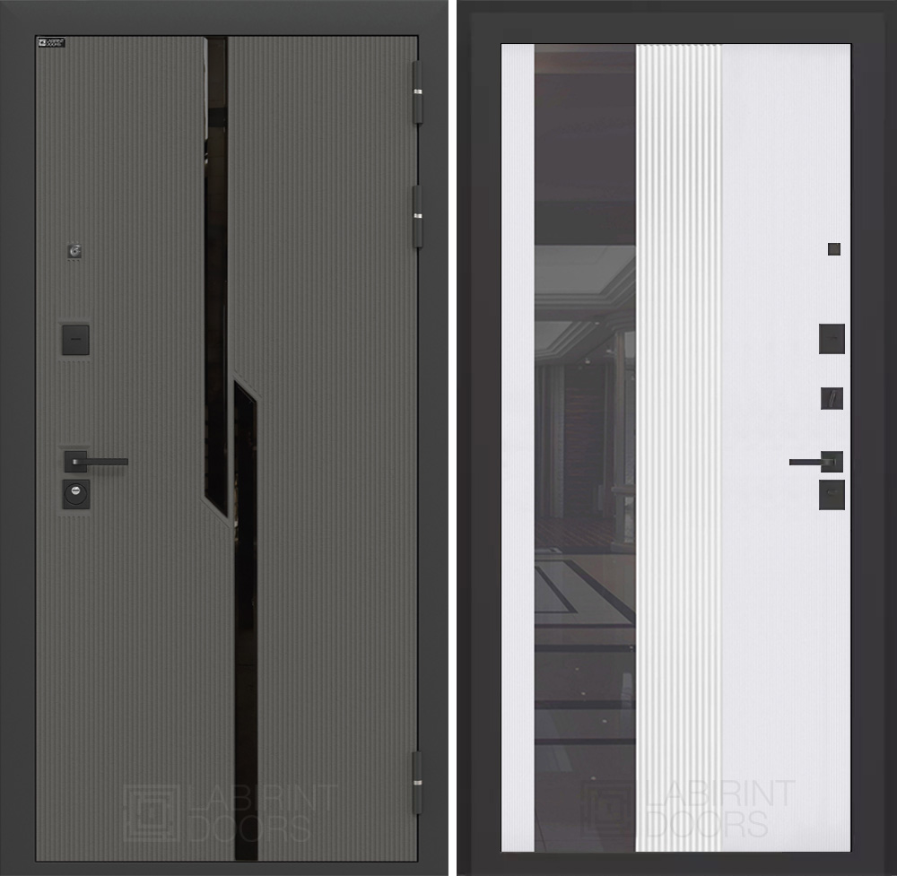 Отделка снаружи: Декоративная MDF панель 10 мм с черным стеклом фацет, цвет «Лофт графит» с металлическим наличником