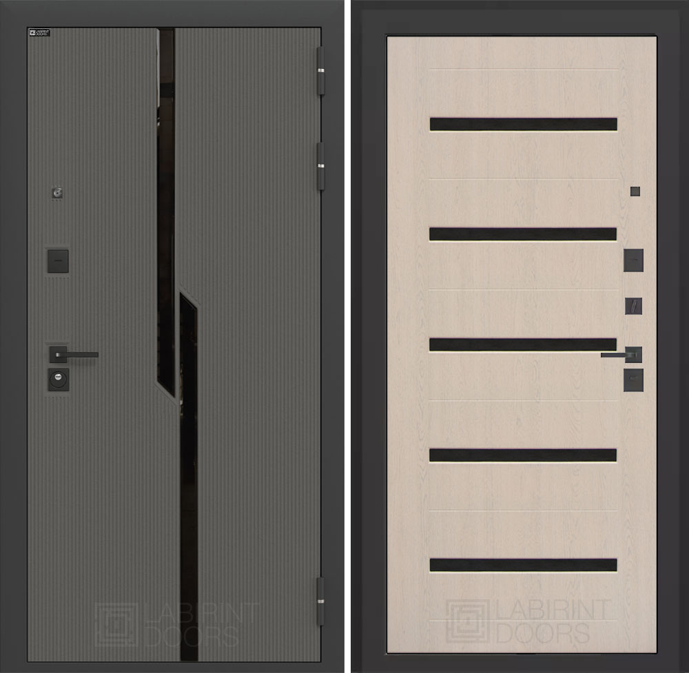 Отделка снаружи: Декоративная MDF панель 10 мм с черным стеклом фацет, цвет «Лофт графит» с металлическим наличником