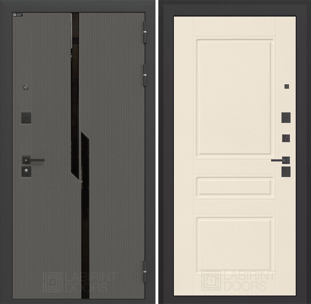 Отделка снаружи: Декоративная MDF панель 10 мм с черным стеклом фацет, цвет «Лофт графит» с металлическим наличником